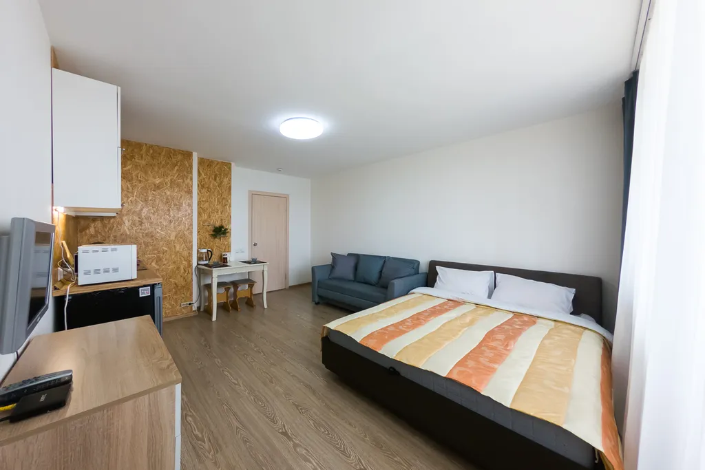 Удобное расположение с ж/вокзалом на метро 12-14 минут, до аэропорта на такси 10-12 минут экспо-центр, автобус № 37 до тц Мега.